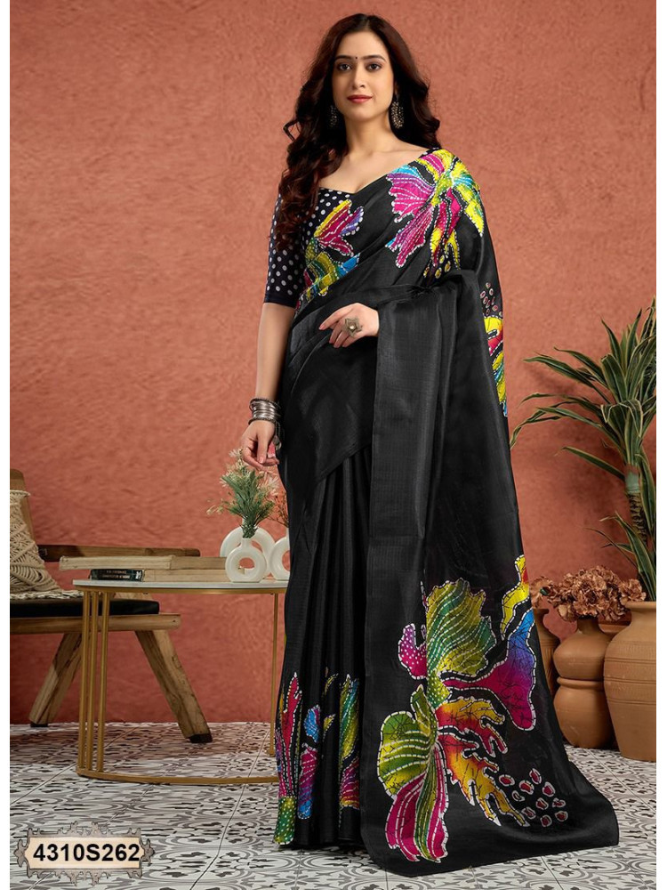 Perfect! This saree has the same modern black floral theme, but with a brighter, more vibrant palette.
